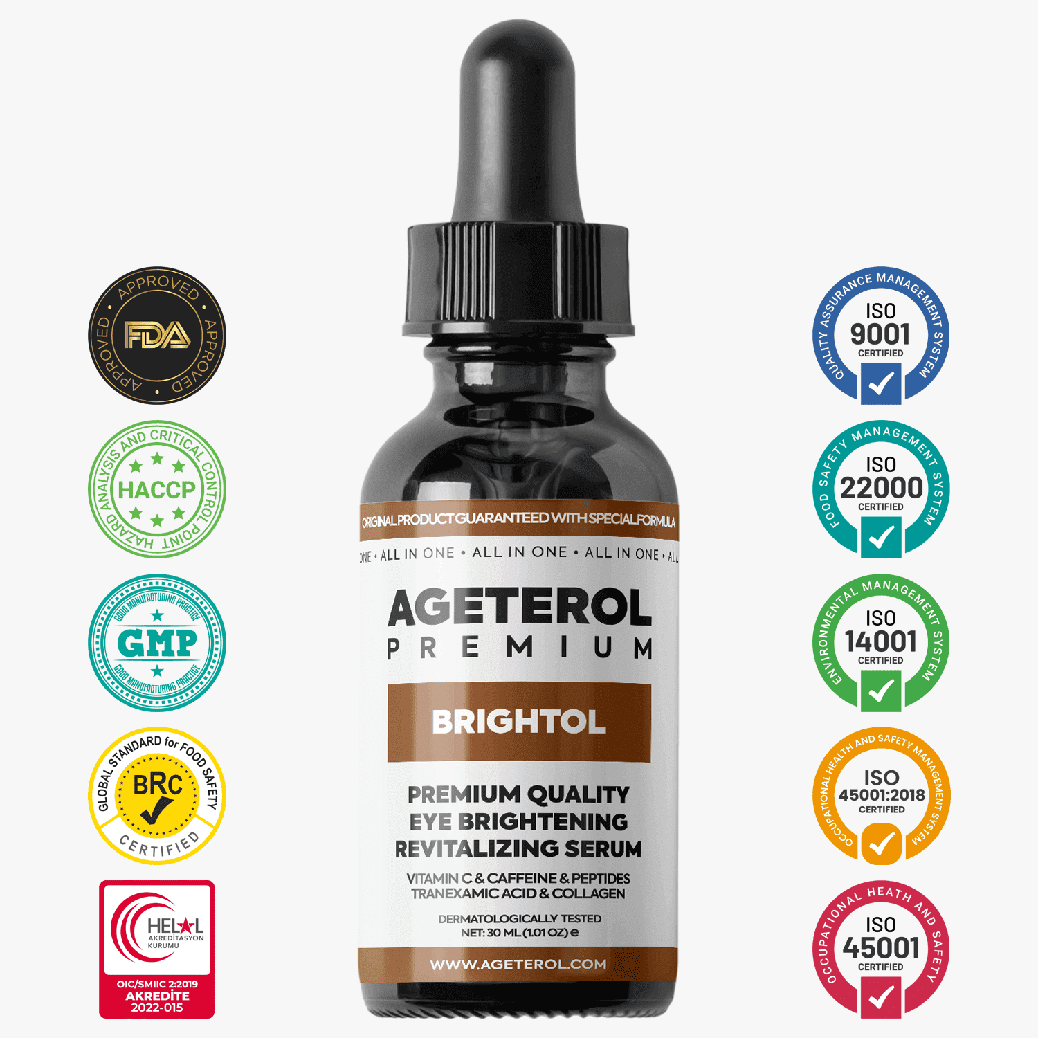 Ageterol Premium Brightol Serum 30ML C Vitamini & Göz Altı Aydınlatıcı ve Göz Altı & Kaz Ayağı Kırışıklık Tedavisi